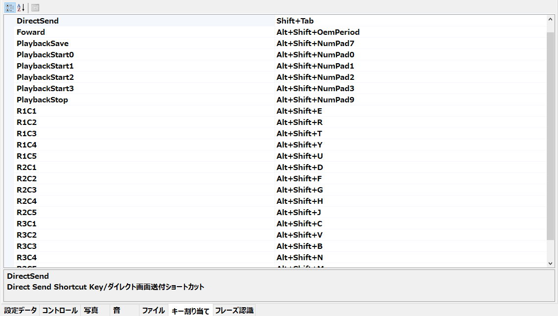 | PlaybackStart1 | 1つ前のプレイバックデータを再生 |